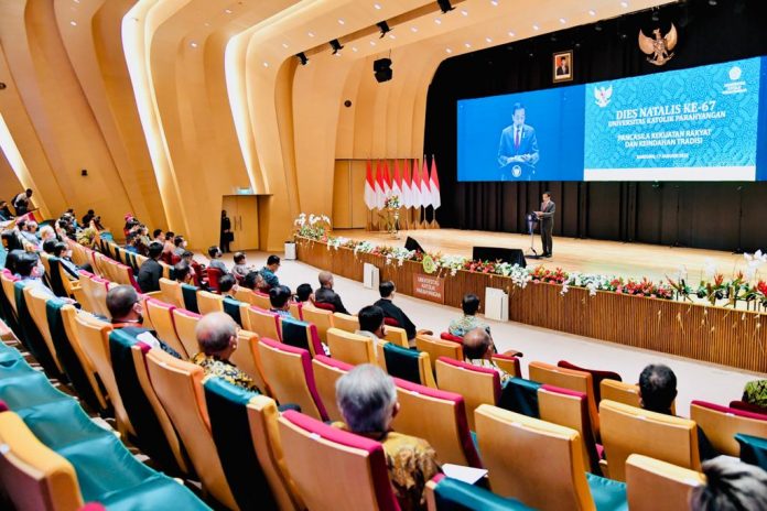 “Berikan mahasiswa kesempatan untuk belajar kepada siapa saja, di mana saja. Belajar kepada dunia industri silakan, belajar kepada dunia perbankan silakan,” ujar Presiden saat menyampaikan pengarahan pada acara Dies Natalis ke-67 Universitas Katolik Parahyangan (Unpar) di Pusat Pembelajaran Arntz-Geise (PPAG) Unpar, Kota Bandung, Provinsi Jawa Barat, pada Senin, 17 Januari 2022.