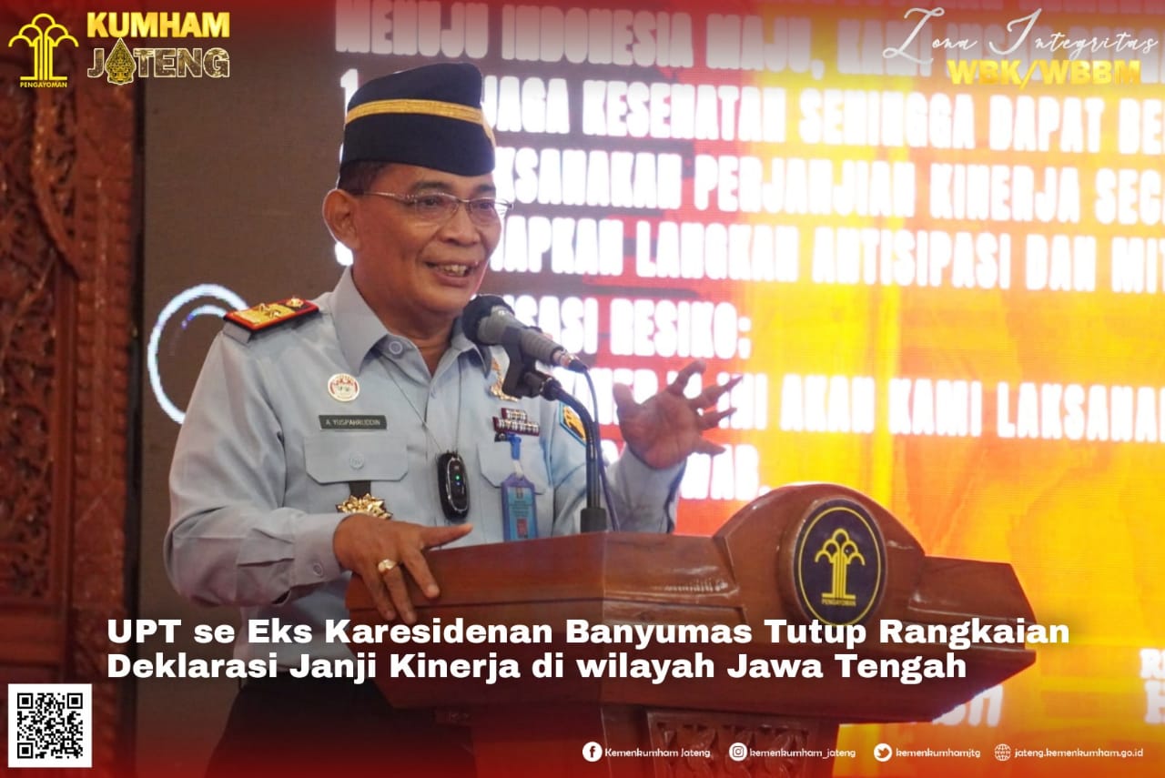 (Vibizmedia – Jateng ) PURWOKERTO- Rangkaian pelaksanaan Deklarasi Janji Kinerja dan Penandatanganan Komitmen Bersama Janji Kinerja UPT Kementerian Hukum dan HAM wilayah Jawa Tengah memasuki gerbong terakhir.