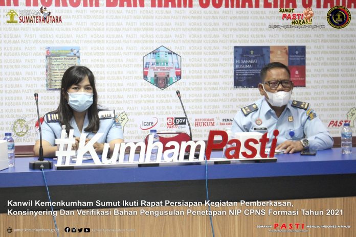 (Vibizmedia – Sumut ) MEDAN – Usai mengumumkan daftar peserta seleksi CPNS di lingkungan Kementerian Hukum dan HAM RI TA 2021 yang lulus, Biro Kepegawaian Kemenkumham melakukan rapat persiapan kegiatan pemberkasan, konsinyering dan verifikasi bahan pengusulan penetapan NIP CPNS Formasi Tahun 2021 Kementerian Hukum dan HAM RI yang dilaksanakan secara virtual yang diikuti seluruh Kantor Wilayah se-Indonesia, Senin 24 Januari 2022.
