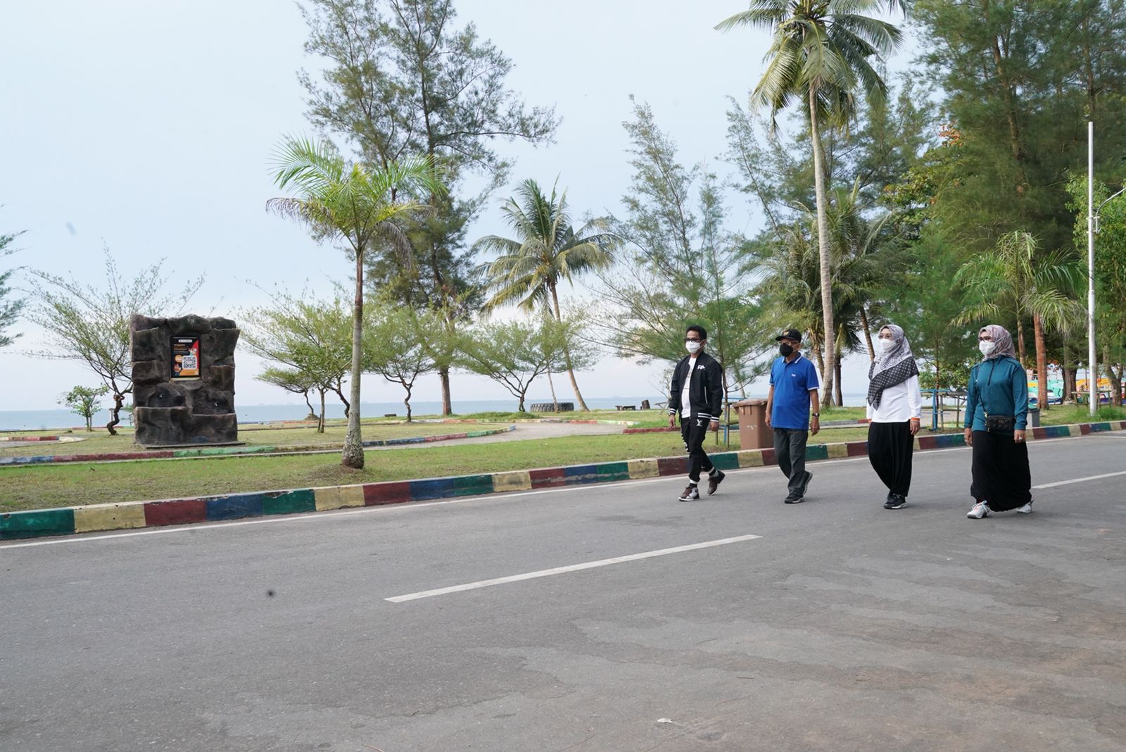 Dengan menyusuri sepanjang pesisir pantai, terlihat pohon cemara berjejer rindang. Wapres beserta Ibu pun nampak terpesona dan menikmati pemandangan asri tersebut.