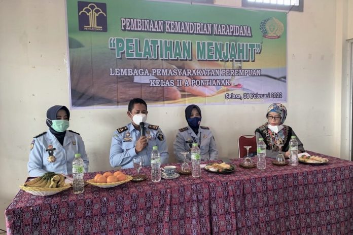 (Vibizmedia – Kalbar) Kubu Raya – Plt. Kepala Divisi Pemasyarakatan Kanwil Kementerian Hukum dan HAM Kalimantan Barat Eka Jaka Riswantara menghadiri dan sekaligus membuka kegiatan Pelatihan Menjahit di Lapas Perempuan (LPP) Kelas IIA Pontianak, Selasa (08/02/22).