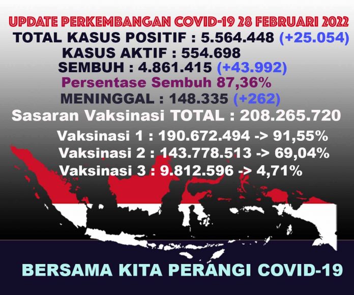 (Vibizmedia – Nasional) Berikut adalah angka akumulatif perkembangan data kasus Covid-19 dari seluruh Indonesia hingga tanggal 28 Februari 2022.