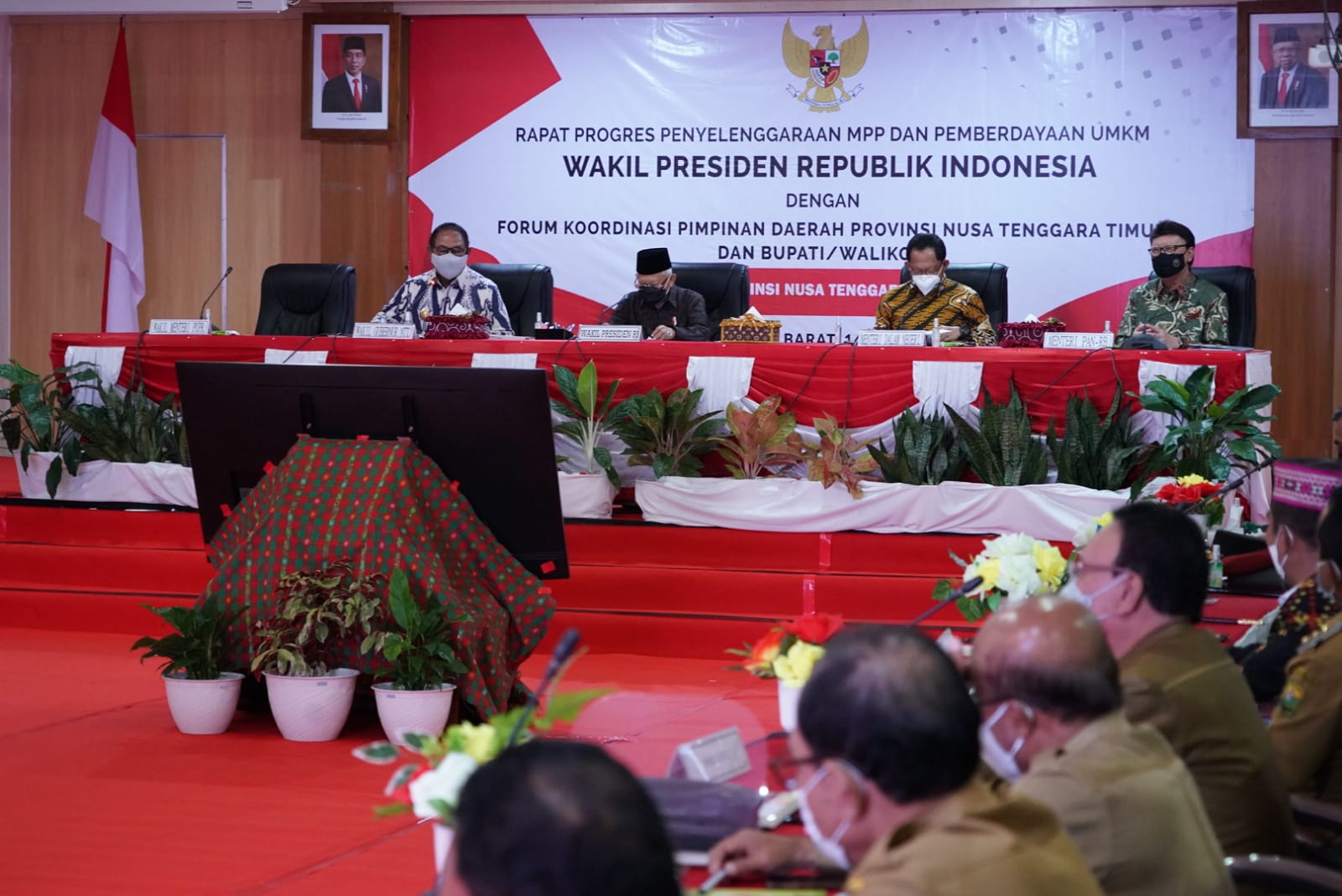 (Vibizmedia – Manggarai Barat) Di sela-sela kunjungan kerja di Provinsi Nusa Tenggara Timur (NTT), Wakil Presiden (Wapres) K.H. Ma’ruf Amin menyempatkan diri memimpin Rapat membahas perkembangan pelayanan publik di NTT melalui Mal Pelayanan Publik (MPP) di Kantor Bupati Manggarai Barat, Wae Kelambu, Komodo, Kabupaten Manggarai Barat, NTT, Senin (14/03/2022).