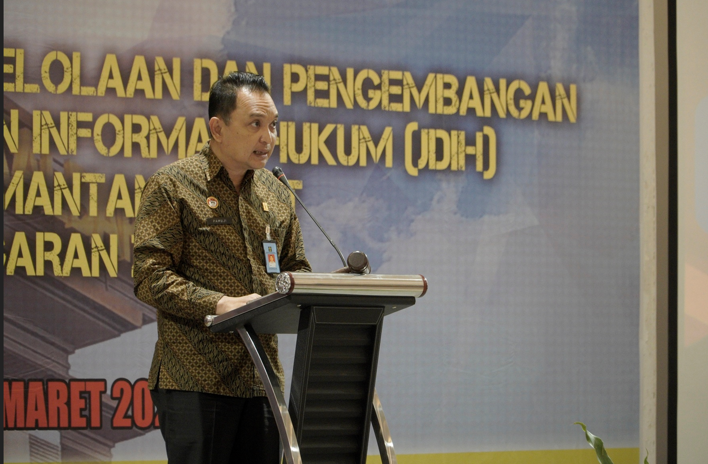 Ia juga menyampaikan dasar dari kegiatan ini adalah berdasarkan Peraturan Presiden Republik Indonesia Nomor 33 tahun 2012 Tentang Jaringan Dokumentasi dan Informasi Hukum Nasional. Kemudian Peraturan Presiden Republik Indonesia Nomor 33 Tahun 2012 tentang Jaringan Dokumentasi dan Informasi Hukum Nasional.