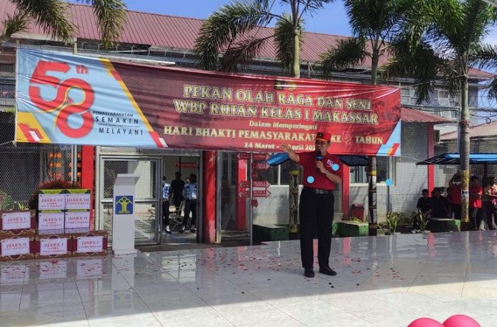 (Vibizmedia – Sulsel) Makassar. Kepala Divisi Pemasyarakatan Suprapto bersama dengan Kepala Divisi Administrasi Sirajuddin hadiri penutupan Pekan Olahraga dan Seni Petugas dan Warga Binaan Pemasyarakatan (WBP) di lapangan Rutan Makassar, Kamis(31/1)