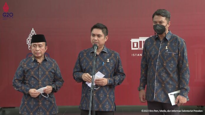Audiensi Himpunan Pengusaha Muda Indonesia (HIPMI) yang dipimpin oleh Ketua Umum Badan Pengurus Pusat (Ketum BPP) HIPMI Mardani H. Maming, di Istana Kepresidenan, Jakarta, Senin,11 April 2022. FOTO: BPMI