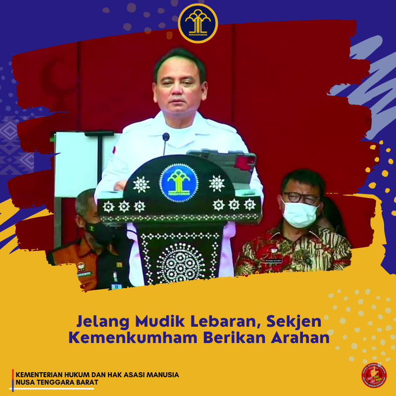 (Vibizmedia – Nasional) ntb.kemenkumham.go.id – Sekretaris Jenderal Kementerian Hukum dan HAM RI (Sekjen Kemenkumham), Komjen Pol Andap Budhi Revianto, memberikan arahannya pada Apel Kesiapan Pengamanan dan Pelepasan Mudik Bareng 2022 pada Kamis (28/04).