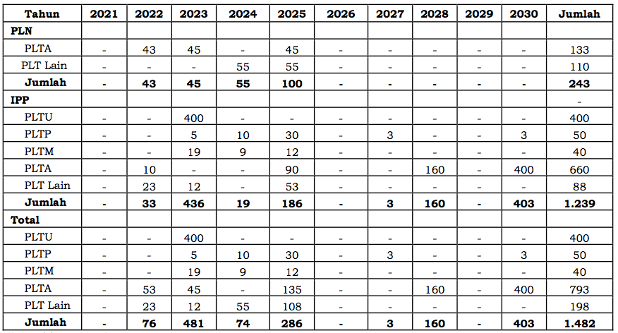 Rekapitulasi Rencana Pembangunan Pembangkit
