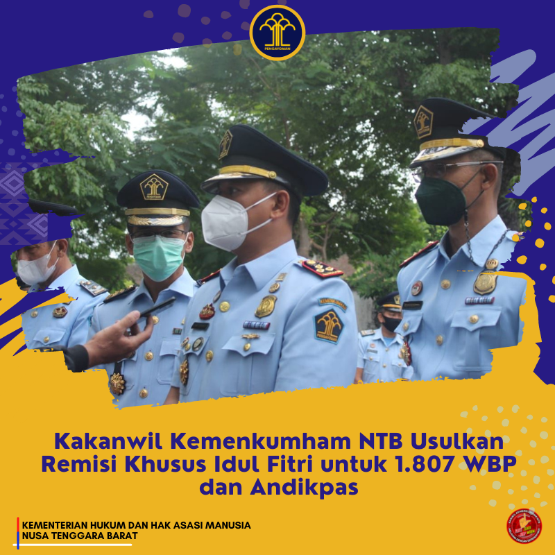 (Vibizmedia – Ntb) ntb.kemenkumham.go.id – Kepala Kanwil Kemenkumham NTB, Romi Yudianto, mengusulkan 1.807 Warga Binaan Pemasyarakatan (WBP) dan Anak Didik Pemasyarakatan (Andikpas) untuk mendapatkan remisi khusus Idul Fitri kepada Menteri Hukum dan HAM, Yasonna H. Laoly.