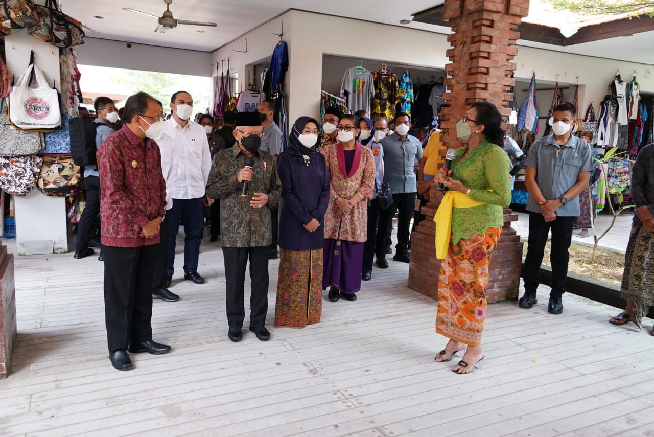 “Hari ini saya berkunjung ke Pantai untuk melihat UMKM dan saya melihat bahwa kegiatan ekonomi masyarakat di Bali khususnya di Kuta ini sudah mulai tumbuh [kembali],” terang Wakil Presiden (Wapres) K.H. Ma’ruf Amin ketika memberikan keterangan pers usai meninjau Kawasan UMKM di Pantai Jerman, Badung, Bali, Selasa (10/05/2022).