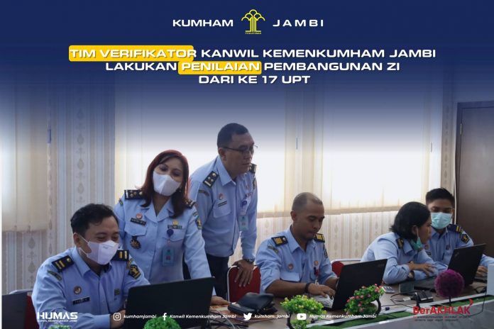(Vibizmedia – Jambi)  Jambi, Selasa (10/05/2022) Kantor Wilayah Kementerian Hukum dan HAM Jambi bersama ke 17 (tujuh belas) Unit Pelaksana Teknis yang tersebar di seluruh Kabupaten yang ada di Provinsi Jambi terus berupaya Membangun  Zona  Integritas  menuju  WBK/WBBM. Hal ini merupakan bentuk pencegahan dan  pemberantasan  korupsi  dan optimalisasi pelayanan terhadap masyarakat  sebagai  bagian  dari pencapaian reformasi birokrasi.