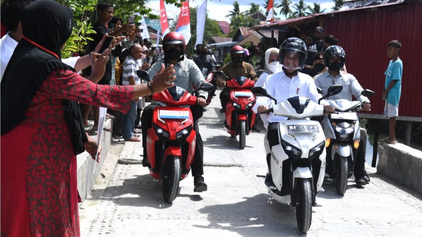Mendekati lokasi acara, keduanya kemudian berganti kendaraan dengan berboncengan naik sepeda motor listrik berwarna putih. Presiden dan Ibu Iriana kemudian menyusuri jalan yang terbuat dari kayu di Kampung Mola yang berada di atas permukaan laut. Lebar jalan yang dilalui Presiden dan rombongan memang hanya cukup untuk satu motor dan dibatasi pagar kayu di sisi kiri dan kanan.