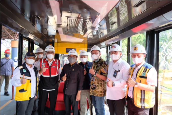 Mensesneg Meninjau Tram Mover Produksi INKA di TMII