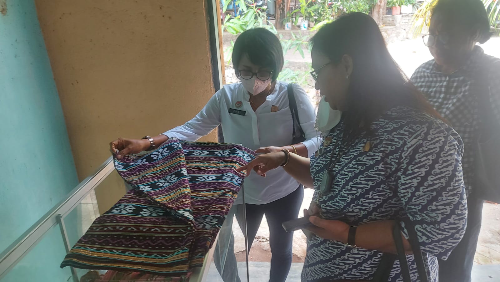 Selanjutnya Tim mengunjungi salah satu pusat produksi Tenun Ikat Flores Timur yang juga merupakan anggota MPIG Tenun Ikat Flores Timur. Tim menghimbau agar para penenun terus meningkatkan kualitas produksi dan promosi menggunakan media sosial sehingga dapat menjaga reputasi Tenun Ikat Flores Timur.