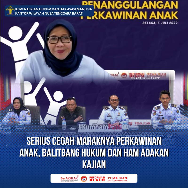 (Vibizmedia – NTB) ntb.kemenkumham.go.id – Kanwil Kemenkumham NTB bersama dengan Badan Penelitian dan Pengembangan Hukum dan Hak Asasi Manusia (Balitbang Hukum dan HAM) mengadakan kajian terkait penanggulangan perkawinan anak pada Selasa (05/07).