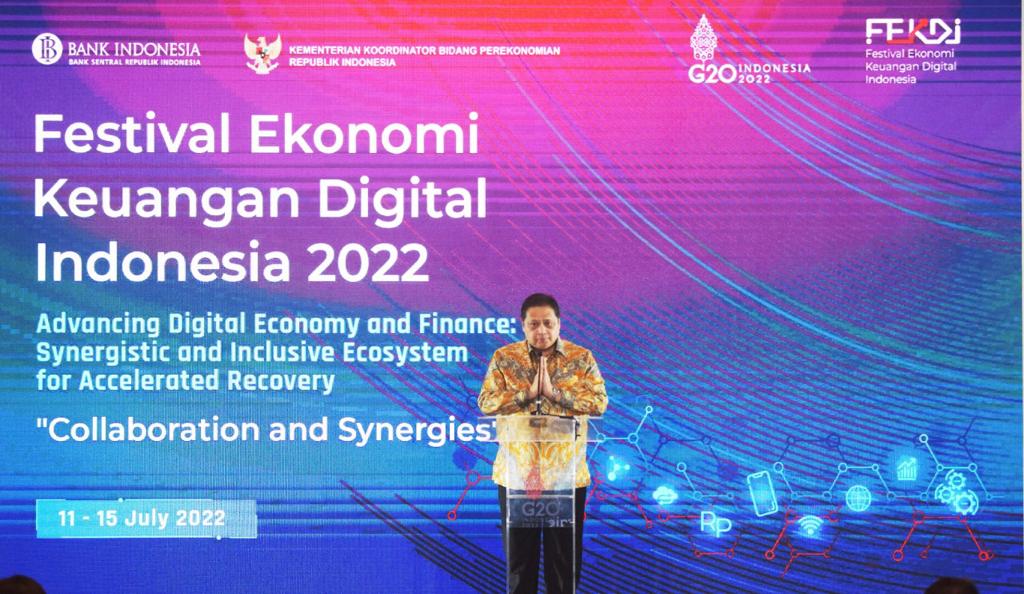 Menteri Koordinator Bidang Perekonomian Airlangga Hartarto yang hadir mewakili Presiden Joko Widodo dalam kesempatan tersebut, menyampaikan bahwa pandemi Covid-19 juga telah menciptakan prospek cerah pada potensi ekonomi dan keuangan digital Indonesia. Pada tahun 2021, nilai perdagangan digital mencapai Rp401 Triliun seiring dengan meningkatnya akseptasi dan preferensi berbelanja daring serta didukung perluasan sistem pembayaran digital dan akselerasi digital banking. Pada tahun 2025 potensi ekonomi digital Indonesia diperkirakan mencapai sekitar Rp2.050 Triliun, kemudian pada tahun 2030 diproyeksikan naik menjadi Rp4.531 Triliun.