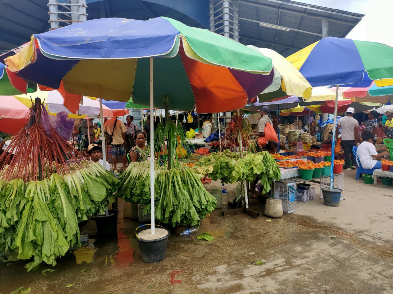 Oh ya, jika Anda berbelanja di pasar, mata uang yang berlaku adalah Dolar Amerika Serikat (US$). Sebagai gambaran, harga sayur seikat sekitar 50 cent.