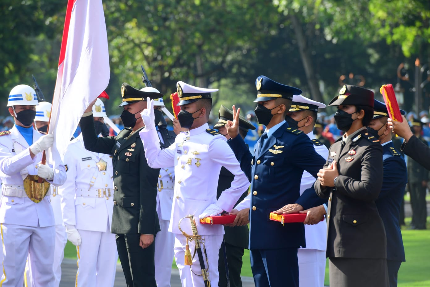 “Oleh karena itu berjanjilah kepada Ibu Pertiwi untuk memberikan yang terbaik untuknya, berbaktilah kepada orangtua saudara untuk mohon doa dan restunya. Selamat bertugas para patriot muda Indonesia. Jagalah kehormatan dirimu sebagai perwira TNI-Polri. Teruslah berjuang untuk negeri tercinta. Berdirilah di Garda terdepan mengawal Pancasila dan NKRI. Buatlah orang tuamu bangga, buatlah Indonesia berjaya,” katanya.
