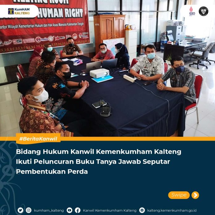 Bidang Hukum Kanwil Kemenkumham Kalteng Ikuti Peluncuran Buku Tanya Jawab Seputar Pembentukan Perda