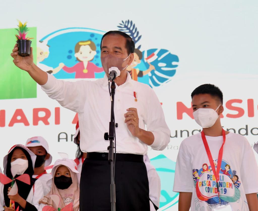 “Inilah yang harus kita jaga bersama-sama agar anak-anak kita ini memiliki dunia bermain, dunia anak-anak dengan keceriaannya mereka. Jangan sampai terjadi lagi yang namanya perundungan,” tegas Presiden saat menghadiri acara peringatan Hari Anak Nasional yang digelar di Kebun Raya Bogor, Jawa Barat, pada Sabtu, 23 Juli 2022.
