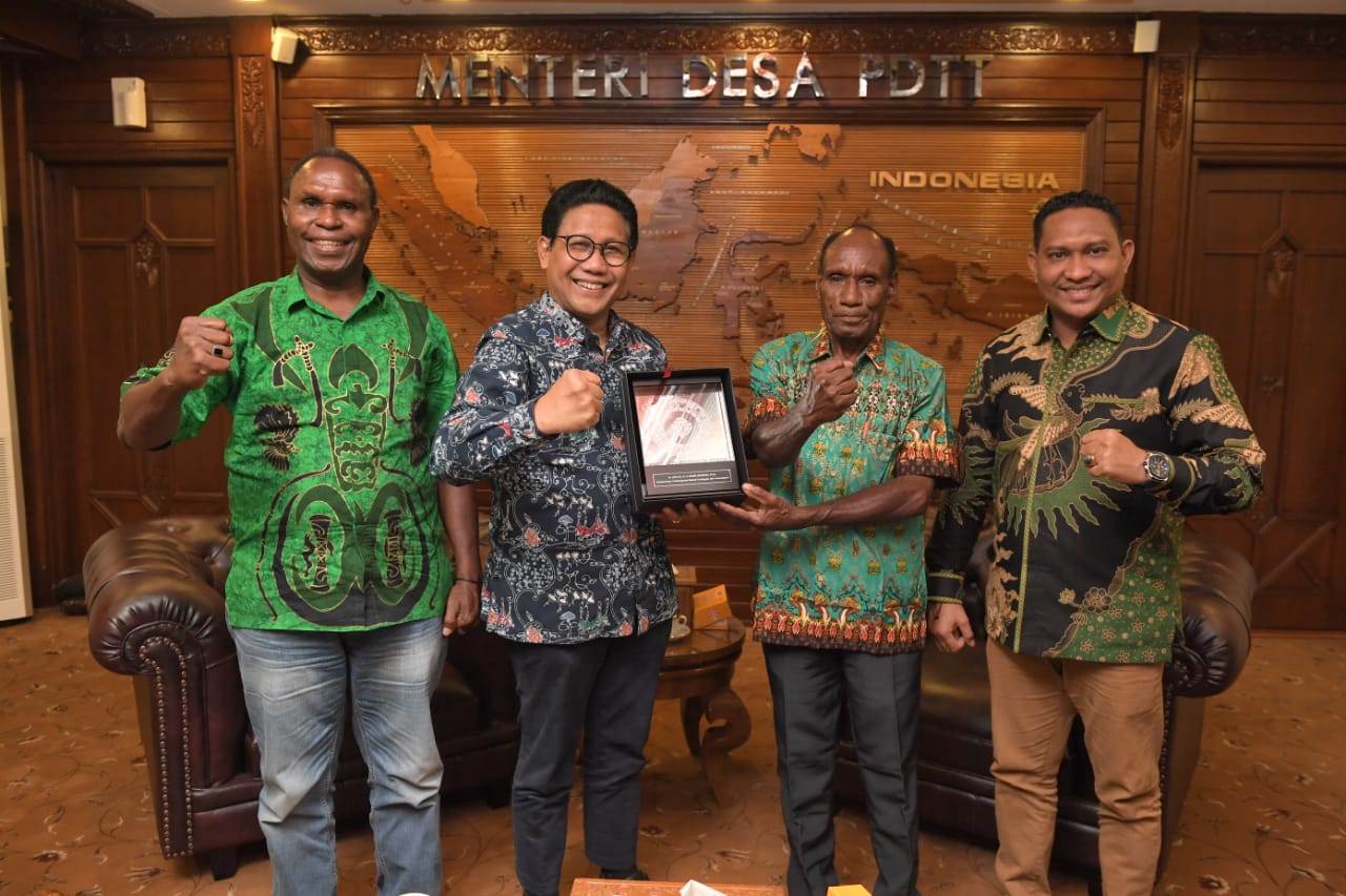Menteri Desa, Pembangunan Daerah Tertinggal dan Transmigrasi Abdul Halim Iskandar saat menerima audiensi Ketua Komisi I DPRD Provinsi Papua Barat, Abdullah Gazam bersama Kepala Dinas Pemberdayan Masyarakat dan Desa Kabupaten Maybrat, Adam Antoh, di ruang kerjanya, Senin, 25 Juli 2022. FOTO: KEMENDES PDTT