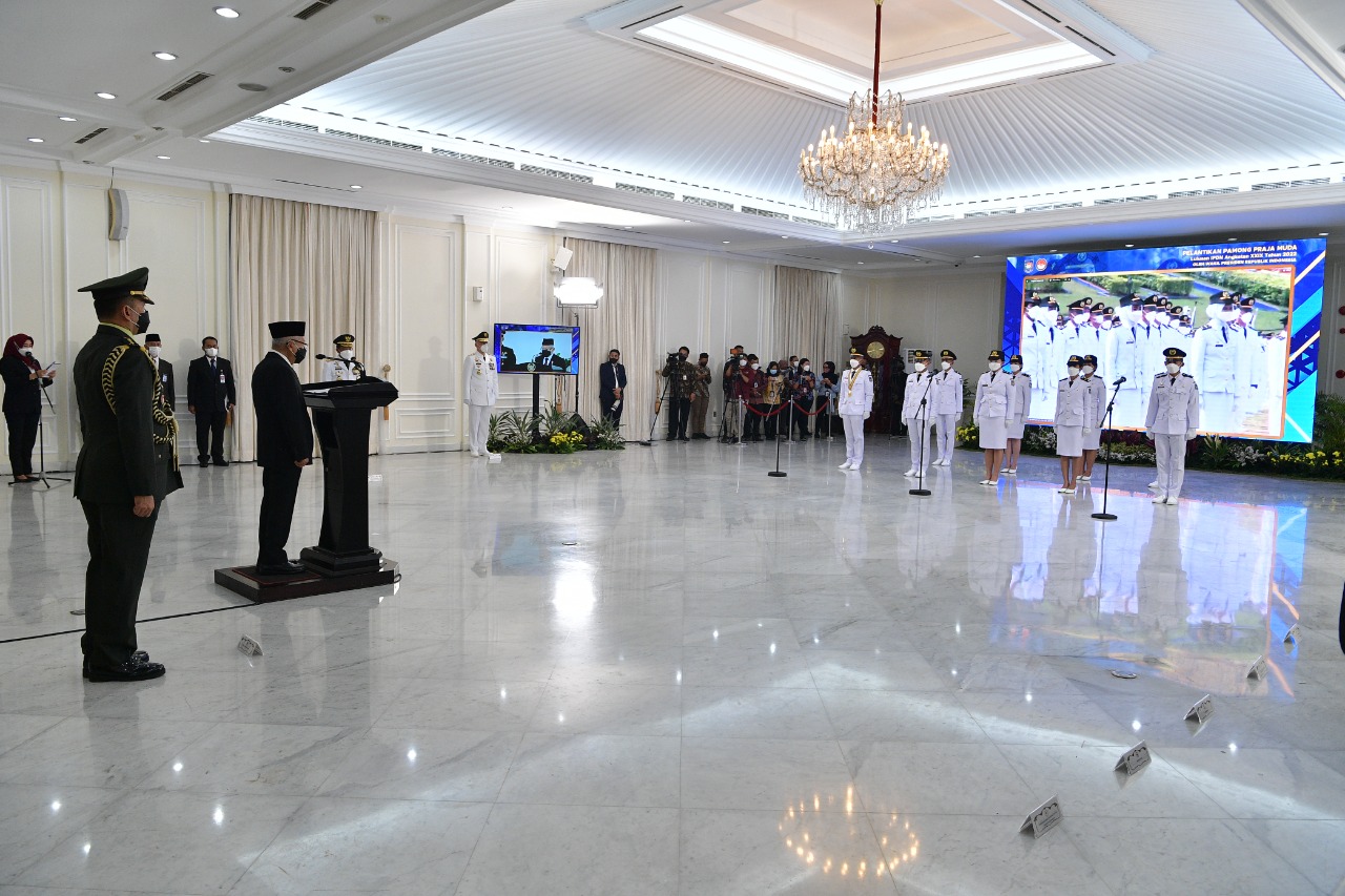 “Hadirkan gagasan segar, serta terobosan untuk eskalasi efektivitas dan efisiensi jalannya pemerintahan,” tegas Wakil Presiden (Wapres) K.H. Ma’ruf Amin saat melantik Pamong Praja Muda Angkatan XXIX Tahun 2022 IPDN di Istana Wapres, Jl. Medan Merdeka Selatan No. 6, Jakarta Pusat, Selasa (02/07/2022).