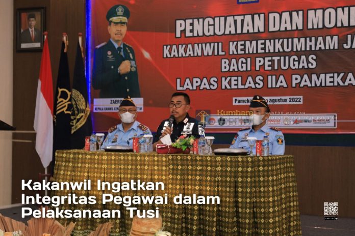 (Vibizmedia – Jatim) PAMEKASAN – Bintorwasdal Kakanwil Kemenkumham Jatim Zaeroji di Pulau Garam, Madura berlanjut. Setelah menutup kegiatan Program Rehabiltasi dan Pembinaan di Lapas Narkotika Pamekasan, kakanwil menyempatkan memberi penguatan di Lapas IIA Pamekasan siang ini (3/8).