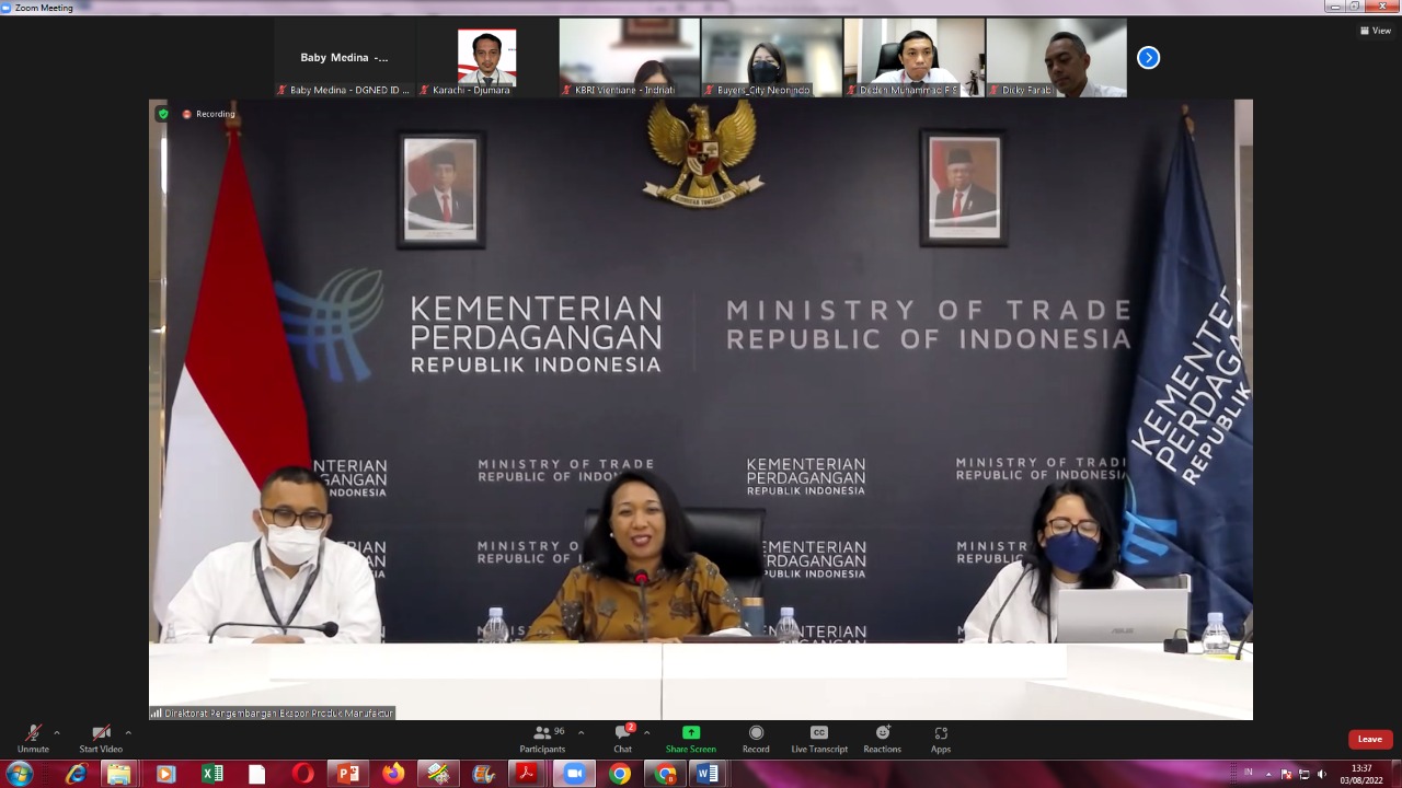 (Vibizmedia – Nasional) Sosialisasi Trade Expo Indonesia (TEI) 2022 telah dilakukan oleh Direktur Pengembangan Ekspor Produk Manufaktur, Ni Made Ayu Marthini bersama kedutaan besar, konsulat jenderal, dan perwakilan perdagangan di wilayah Asia dan Pasifik pada Rabu (3 Agt), bertujuan untuk menggalang buyer luar negeri dari kawasan Asia Pasifik