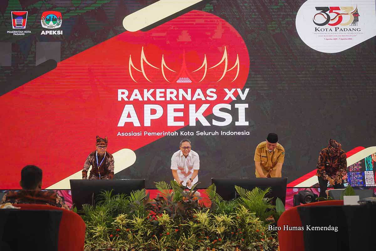 (Vibizmedia – Nasional) Menteri Perdagangan Zulkifli Hasan  membuka Rapat Kerja Nasional (Rakernas) XV Asosiasi Pemerintah Kota Seluruh Indonesia (Apeksi) di Padang, Sumatra Barat, pada Senin (8/8).  Rakernas ini mengambil tema ‘Kota Kita Bangkit: Yang Maju Yang Bersinergi’.