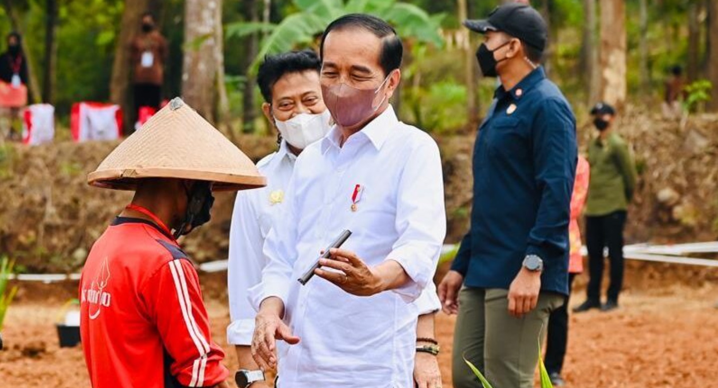 (Vibizmedia-Nasional) Setibanya di Desa Sanggang, Kecamatan Bulu, Kabupaten Sukoharjo, Provinsi Jawa Tengah, Presiden Joko Widodo melihat penanaman kelapa genjah dan menghampiri seorang petani serta bertanya kepadanya.