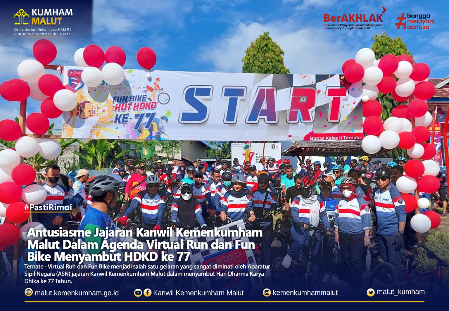 (Vibizmedia – Malut) Ternate, malut.kemenkumham.go.id – Virtual Run dan Fun Bike menjadi salah satu gelaran yang sangat diminati oleh Aparatur Sipil Negara (ASN) jajaran Kanwil Kemenkumham Malut dalam menyambut Hari Dharma Karya Dhika ke 77 Tahun.