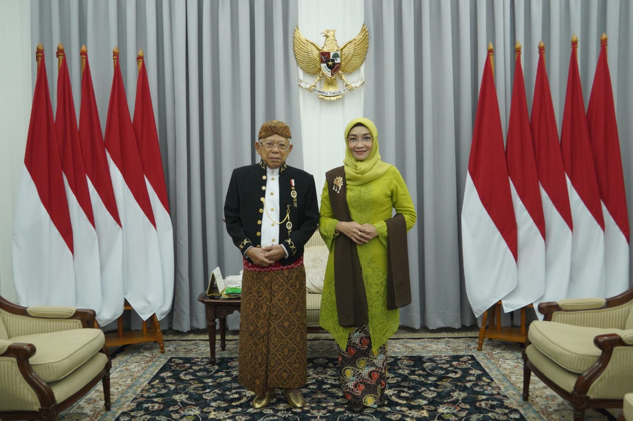 Wapres didampingi Ibu Hj. Wury Ma’ruf Amin tiba di Gedung Nusantara sekitar pukul 09.00 WIB. Mereka tampak serasi dan elegan dengan Wapres mengenakan pakaian khas Keraton Surakarta dan Ibu Wury mengenakan pakaian nasional kebaya berwarna hijau.