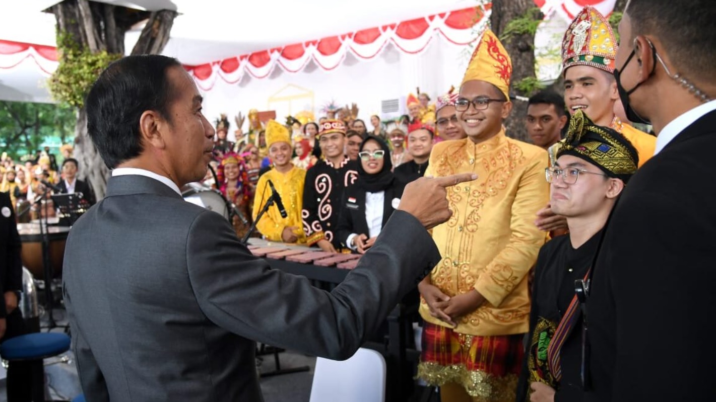 Setelah itu, Presiden Jokowi kembali memasuki halaman Istana Merdeka lalu menuju panggung undangan masyarakat umum. Kepala Negara pun menyapa masyarakat yang hadir.
