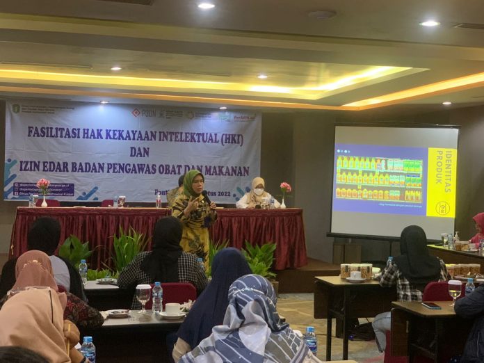 (Vibizmedia – Kalbar) Pontianak-Kepala Divisi Pelayanan Hukum Dan HAM Harniati menjadi Narasumber Kegiatan Fasilitasi Hak Kekayaan Intelektual (HKI) Dan Izin Edar Badan Pengawas Obat Dan Makanan yang dilaksanakan di Orchardz hotel Ayani Kamis(18/08/2022) Kegiatan dibuka oleh Syarif Kamaruzaman selaku Kepala Dinas Perindustrian, Perdagangan, Energi dan Sumber Daya Mineral. kegiatan dipandu oleh Walter Sitorus sebagai Moderator. Kegiatan  Fasilitasi Hak Kekayaan Intelektual dan Izin Edar Badan Pengawas Obat dan Makanan di bawakan oleh dua Narasumber yaitu Kepala Divisi Pelayanan Hukum Dan HAM, Harniati menyampaikan materi terkait Peran Kantor Wilayah Kementerian Hukum Dan HAM Kalimantan Barat dalam Perlindungan Merek di Indonesia. Narasumber kedua Irma Eprilina menyampaikan materi terkait Tata Cara Registrasi Pangan Olahan.