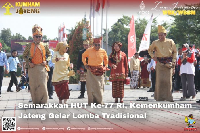 (Vibizmedia – Jateng ) SEMARANG – Semarakkan Hari Ulang Tahun (HUT) Ke-77 Kemerdekaan Republik Indonesia, Kanwil Kementerian Hukum dan HAM Jawa Tengah menggelar sejumlah lomba tradisional, antara lain lomba balap karung, balap kelereng, makan krupuk dan memasukkan pensil dalam botol.