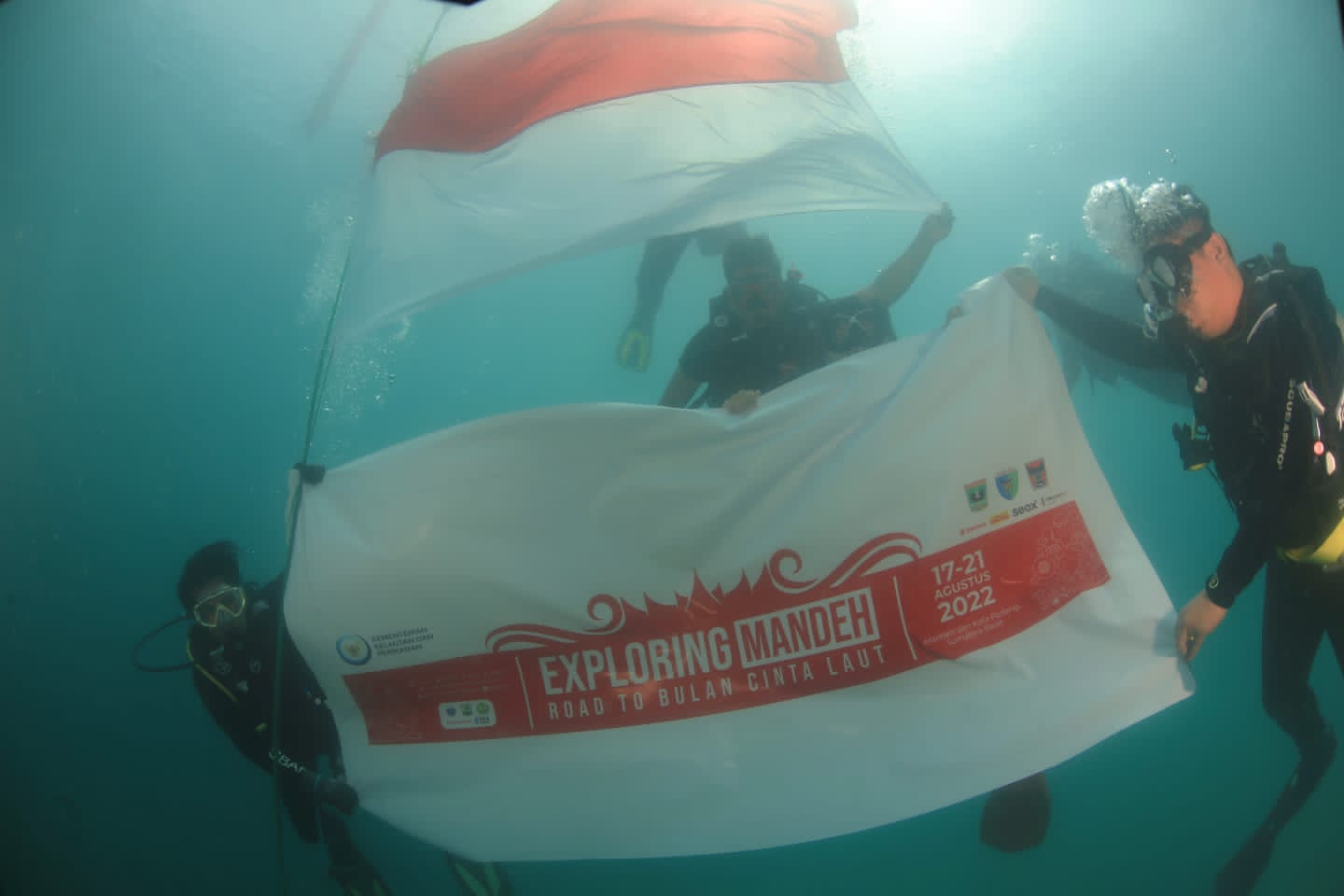 Selain upacara, juga digelar aksi membersihkan perairan bawah laut di sekitar lokasi penyelaman (underwater clean-up).