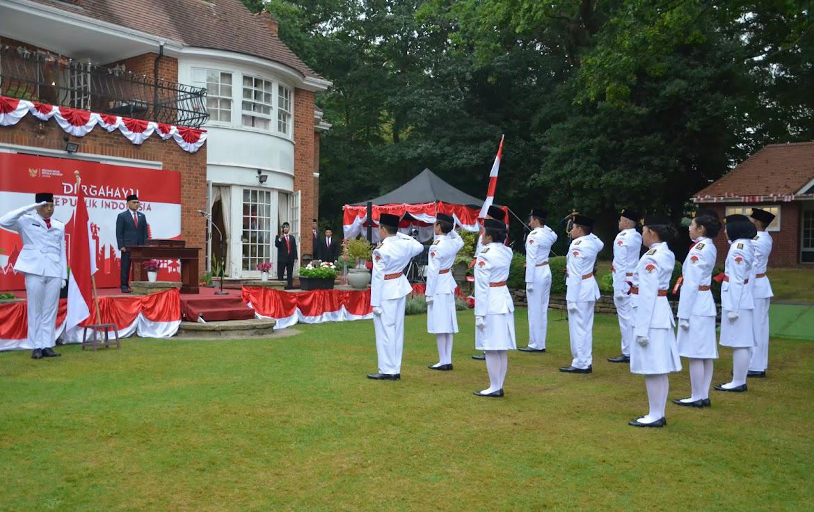 Upacara juga dihadiri oleh Warga Negara Indonesia (WNI) yang berada di Inggris dilaksanakan secara hikmat.