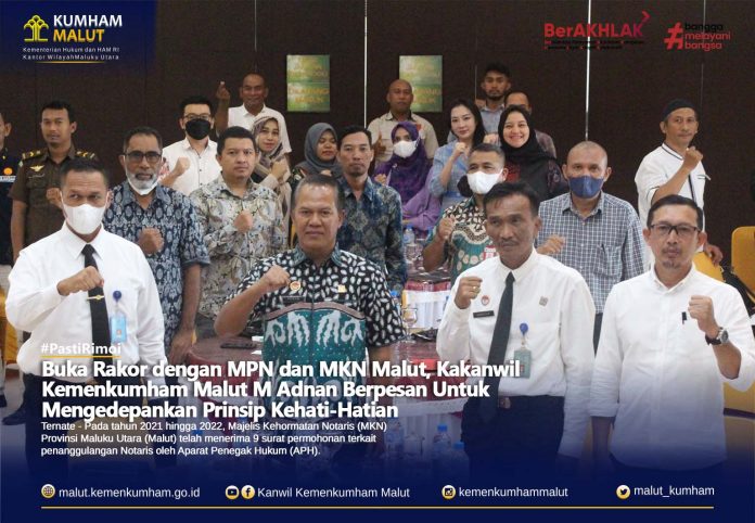 Menyikapi hal tersebut, Kepala Kantor Wilayah (Kakanwil) Kementerian Hukum dan HAM Maluku Utara (Kemenkumham Malut) berpesan agar para Notaris untuk mengedepankan prinsip kehati-hatian.