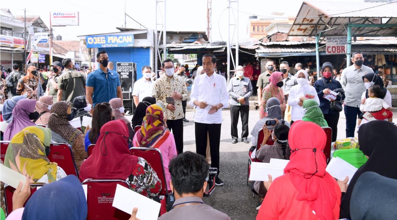 (Vibizmedia-Nasional) Presiden Joko Widodo didampingi Ibu Iriana Joko Widodo mengunjungi Pasar Cicaheum, Kota Bandung, Minggu, 28 Agustus 2022 untuk menyerahkan bantuan sosial kepada para penerima manfaat dan pedagang, berupa bantuan modal kerja (BMK) dan bantuan langsung tunai (BLT) kepada peserta Program Keluarga Harapan (PKH) sebagai tambahan modal usaha.