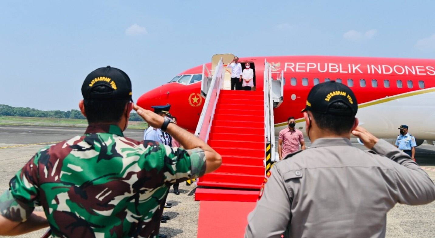 Dalam kunjungan kerja tersebut, Presiden Jokowi menggunakan Pesawat Kepresidenan Indonesia -1 dari Bandar Udara Halim Perdanakusuma, Jakarta, sekitar pukul 12.00 WIB.
