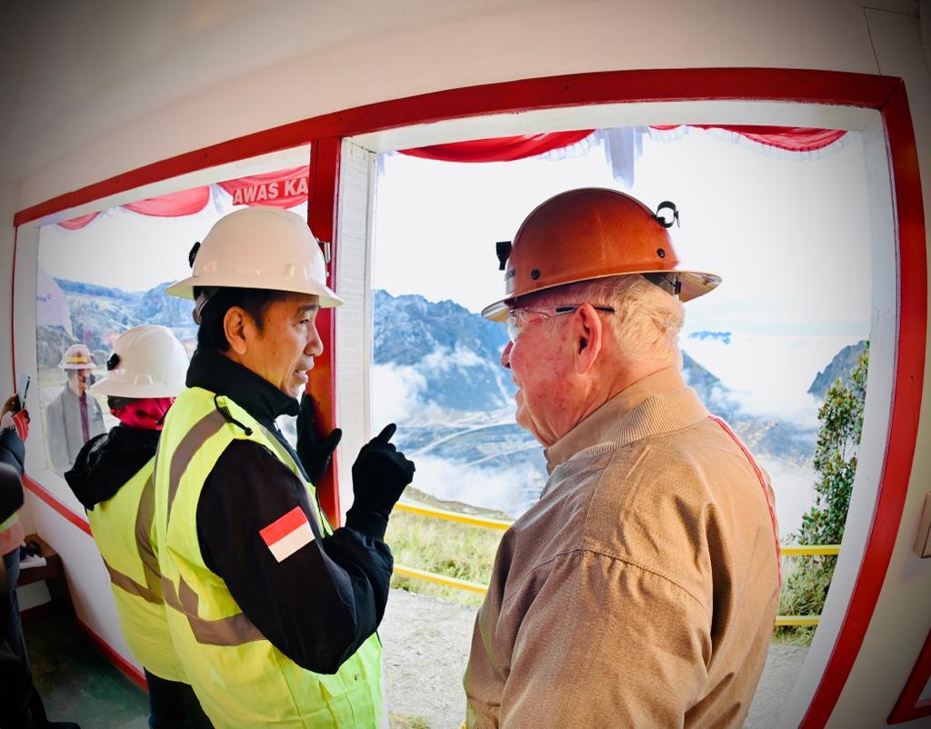 Sambil melihat kawasan tambang terbuka PTFI dari Grasberg, Presiden juga berbincang dengan Presiden Komisaris PTFI Richard Adkerson.