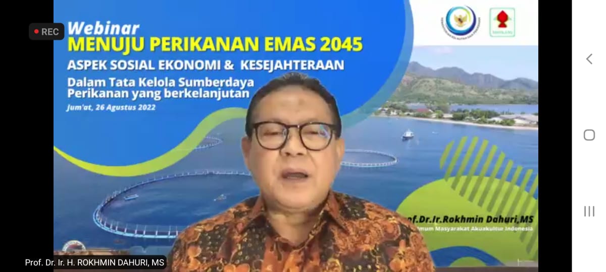 Nyoman menyatakan, dalam upaya mewujudkan visi Indonesia Emas 2045 khususnya sektor kelautan dan perikanan perlu disusun roadmap untuk mendayagunakan sumber daya ikan sebagai pendorong pertumbuhan ekonomi nasional, dengan tetap memperhatikan keberlanjutan sumberdaya ikan agar tetap lestari. Penyelenggaraan webinar diapresiasi sebagai rangkaian ajang komunikasi dan mendapatkan masukan/pandangan dari stakeholder tentang rumusan kebijakan pembangunan sektor kelautan dan perikanan menuju Indonesia Emas 2045.