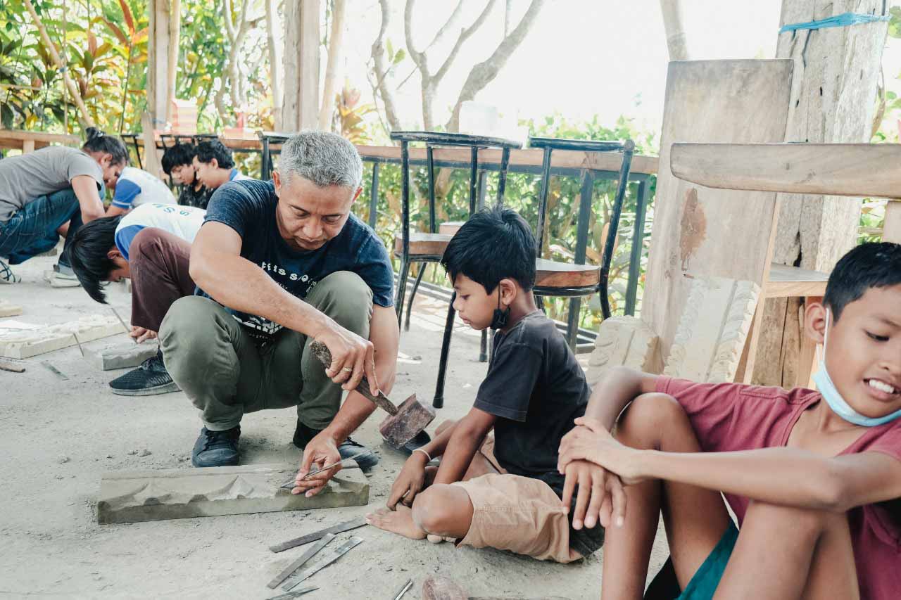 Seorang penggiat budaya mencoba melakukan satu upaya untuk menarik minat anak-anak sekitar untuk kembali mengenal budaya asli seni ukir. I Komang Adhiarta, dia adalah seorang penggiat budaya yang membangun Kulidan Kitchen and Space sebagai galeri seni karya yang multifungsi. Beragam karya telah dipamerkan di galeri tersebut, khususnya karya hasil anak-anak dalam mengenal seni ukir.