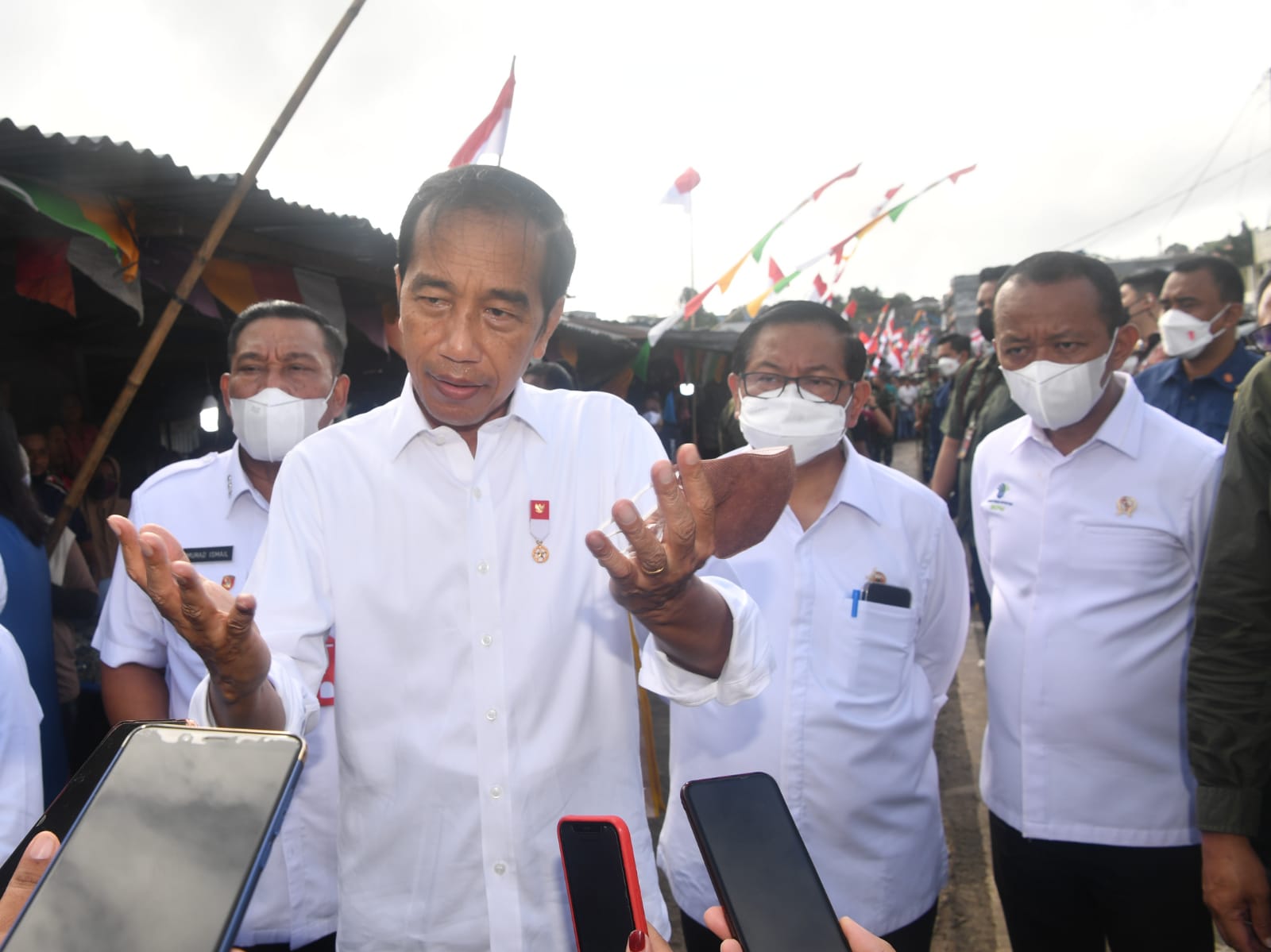 Presiden Joko Widodo memberikan keterangan pers usai mengunjungi Pasar Olilit, di Tanimbar Selatan, Kabupaten Kepulauan Tanimbar, Maluku, Jumat, 2 September 2022. FOTO: BIRO PERS SETPRES