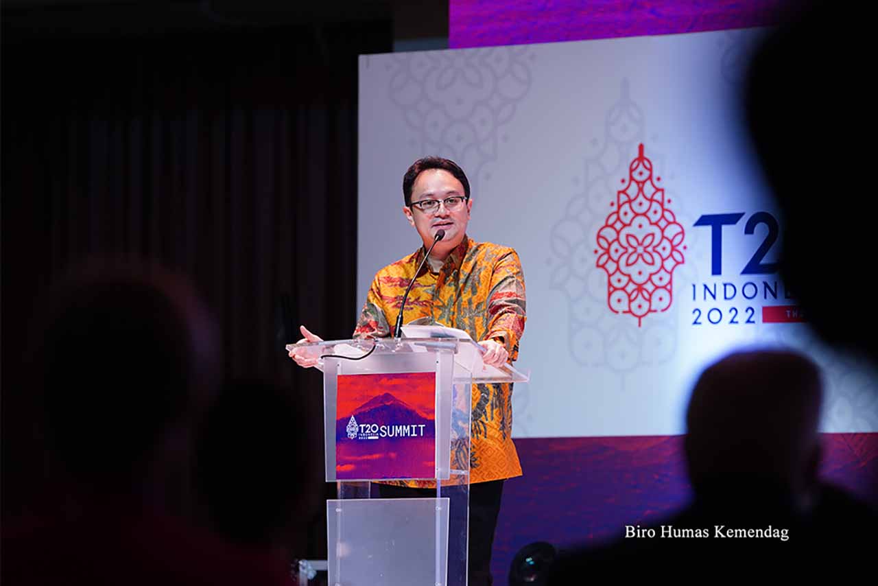 Wakil Menteri Perdagangan, Jerry Sambuaga menjadi narasumber pada Penutupan T20-G20 Dialogue in Fostering Global Cooperation dalam T20 Summit di Badung, Bali, Selasa, 6 September 2022 (Foto:Kemendag)