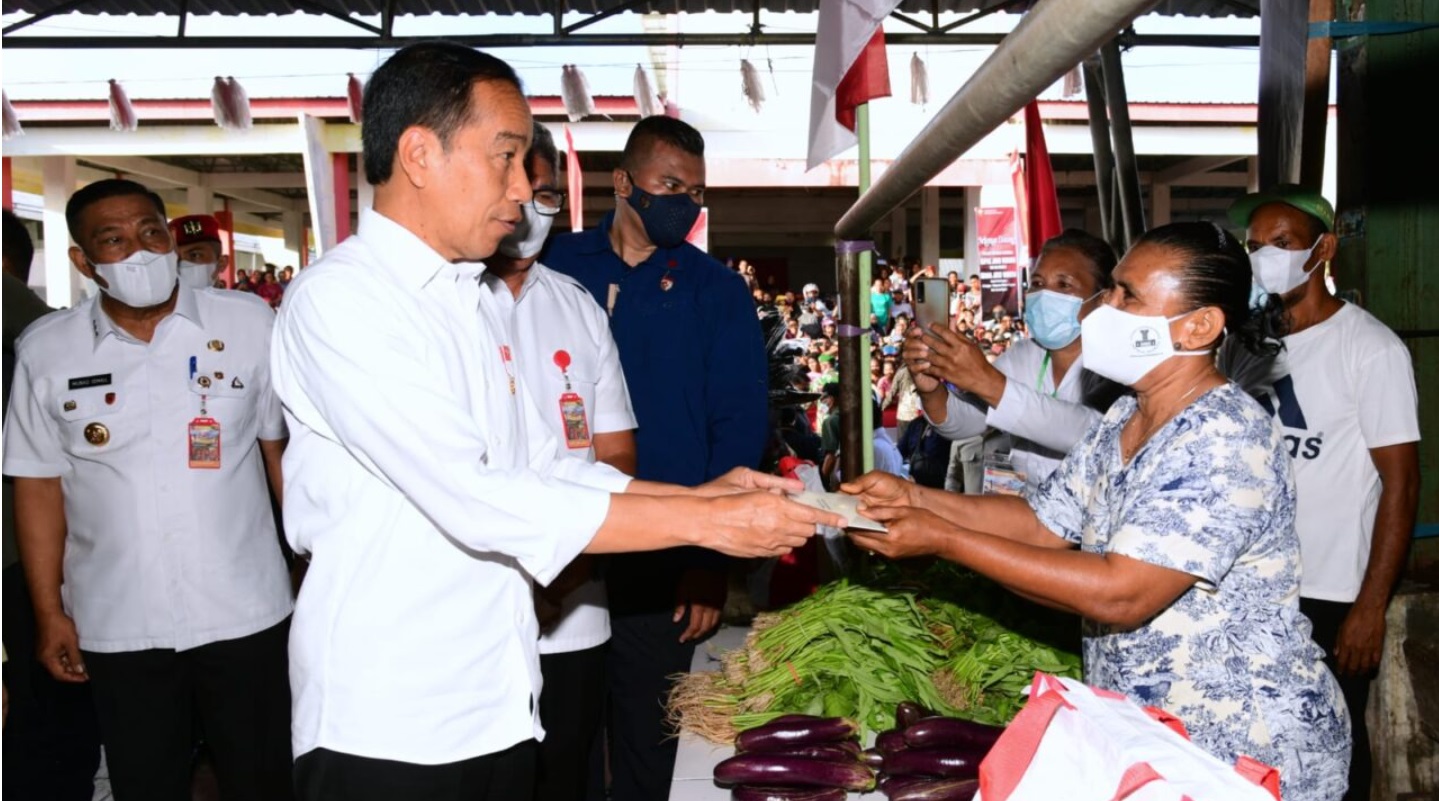Presiden Joko Widodo mengawali kegiatan kunjungan kerja hari kedua di Provinsi Maluku, dengan memberikan bantuan sosial di Pasar Langgur, Kabupaten Maluku Tenggara, pada Kamis, 15 September 2022. FOTO: BIRO PERS SETPRES
