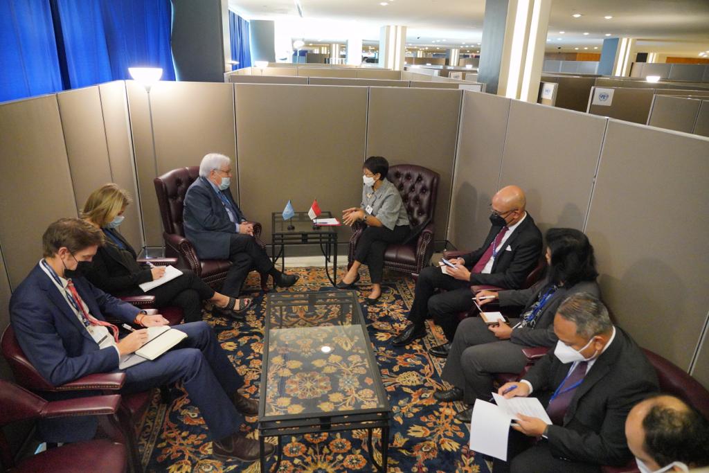 Pertemuan antara Menlu Retno Marsudi  dengan Martin Griffiths, Under-Secretary-General for Humanitarian Affairs and Emergency (Wakil Sekjen PBB, Kepala Bantuan Kemanusiaan) di New York, Amerika Serikat pada 19 September 2022 (Foto: Kemenlu)