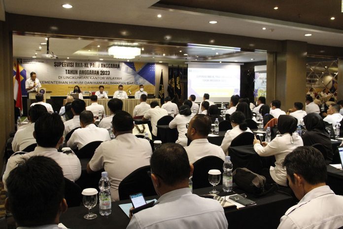 (Vibizmedia – Kalbar) Pontianak – Supervisi RKAK/L Pagu Anggaran merupakan bagian dari proses perencanaan dan penganggaran yang dilakukan dengan melakukan verifikasi atas kelengkapan dan kebenaran dokumen yang dipersyaratkan serta kepatuhan dalam penerapan kaidah-kaidah perencanaan penganggaran. Kantor Wilayah, melalui Divisi Administrasi dengan didampingi oleh Unit Eselon I Biro Perencanaan berperan aktif melakukan koordinasi dengan satuan kerja dalam penyusunan rencana kerja dan anggaran, mulai dari pagu indikatif, pagu anggaran hingga pagu alokasi anggaran.