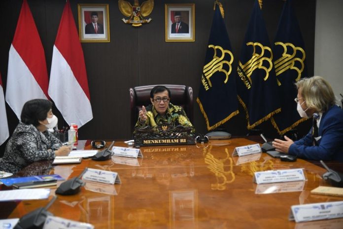 “Saat ini kita masih menggunakan Kitab Undang-undang Hukum Pidana (KUHP) warisan Belanda. Harapannya kami dapat segera merampungkan revisi KUHP dengan prinsip restorative justice dalam penjatuhan hukuman,” ujar Menkumham dalam pertemuan yang digelar di ruang rapatnya.