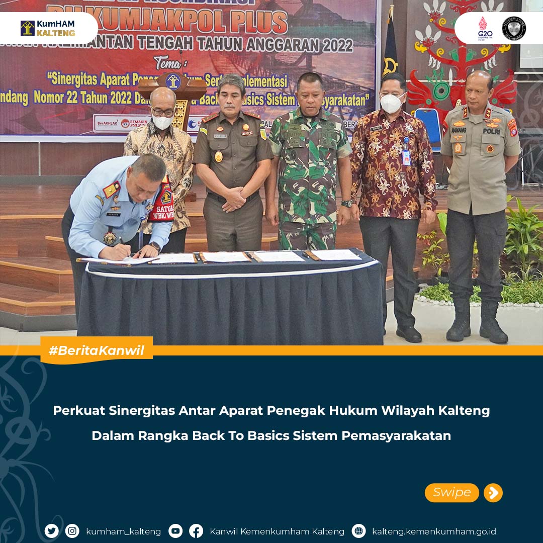 (Vibizmedia – Kalteng) Palangka Raya – Kegiatan Rapat Koordinasi dan Konsultasi Pengadilan, Kementerian Hukum, Kejaksaan, dan Kepolisian (DILKUMJAKPOL) Plus Korem 102/ Panju Panjung dan BNNP Wilayah Kalimantan Tengah Tahun Anggaran 2022, dengan mengusung tema “Sinergitas Aparat Penegak Hukum Serta Implementasi Undang-Undang Republik Indonesia Nomor 22 Tahun 2022 tentang Pemasyarakatan Dalam Rangka Back To Basics Sistem Pemasyarakatan”, Jumat (23/09).